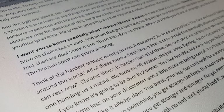 [vc_row][vc_column width="2/3"][vc_column_text]One major and consistent hurdle for chronic illness patients to manage is communicating life with disease to anyone who hasn't personally experienced it. Nearly all of the communication that exists falls into two categories: sterile lists of symptoms and medical level epidemiology. On the other side, there were early blog posts from patients that generally discussed singular events - advice on specific symptoms, tales of doctor visits.